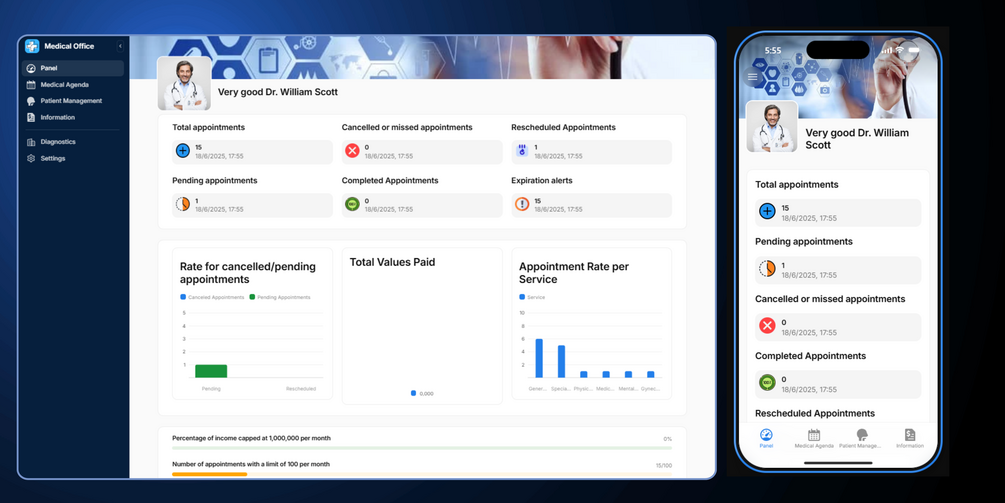 The app works seamlessly on mobile devices, tablets, and computers, allowing doctors and patients to access information from anywhere, at any time.